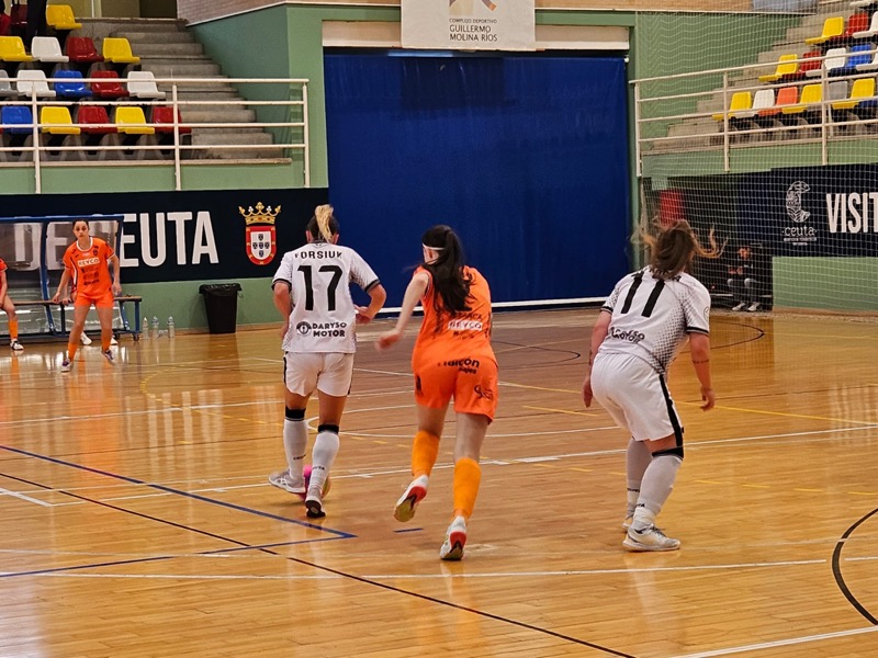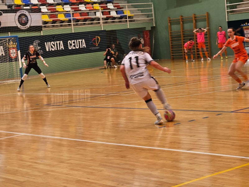 Tan solo estuvo cerca el REYCO Burela de meterse en el partido con la primera ocasión de la que dispuso nada más regresar, obligando a Falconi a estirar la pierna para detener el disparo. A partir de ahí, confetis al aire, música con ritmo y baile sobre la pista para el Ceuta Femenino que empezó, por primera vez en mucho tiempo en esta temporada, a pasarlo bien.