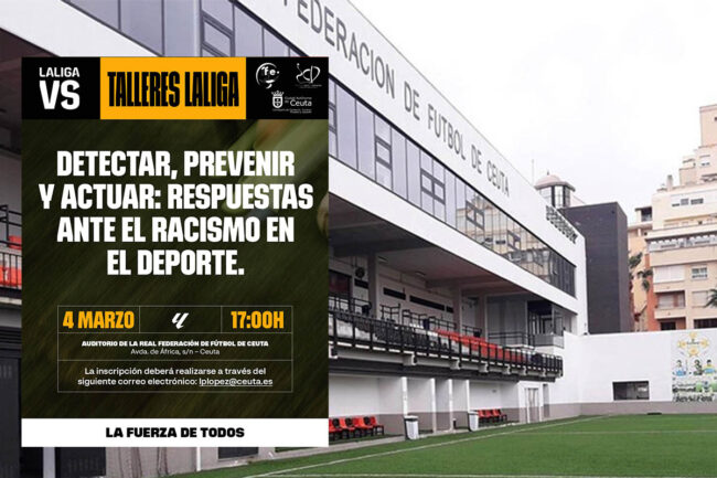 La Ciudad Autónoma de Ceuta, a través de la Consejería de Comercio, Turismo, Empleo y Deporte y el Instituto Ceutí de Deportes (ICD), en colaboración con LaLiga, organiza el taller formativo titulado 'Detectar, prevenir y actuar: respuestas ante el racismo en el deporte'.