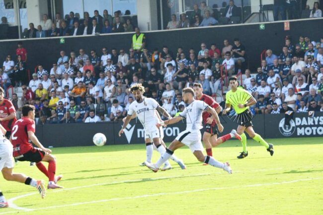 El Mirandés, por su lado, amenazaba sin tampoco ser un peligro inminente. Balones en largo que eran bien defendidos y centros que hacían que Guille Vallejo no tuviera ni que arquear una ceja.