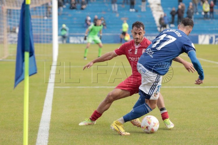 El Ceuta encontraba el premio en los primeros minutos y eso le hacía más fuerte. En el minuto 21, pudo conseguir el segundo en un centro de Liberto, al que no llegó por poco Jota.