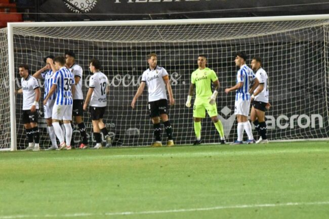 Acto seguido, el Sanse iba a tener otra ocasión bastante clara. Un centro raso, que dejó atrás Gorka Carrera y Alberto Dadie iba a rematar rozando el palo de la portería de Guille Vallejo.