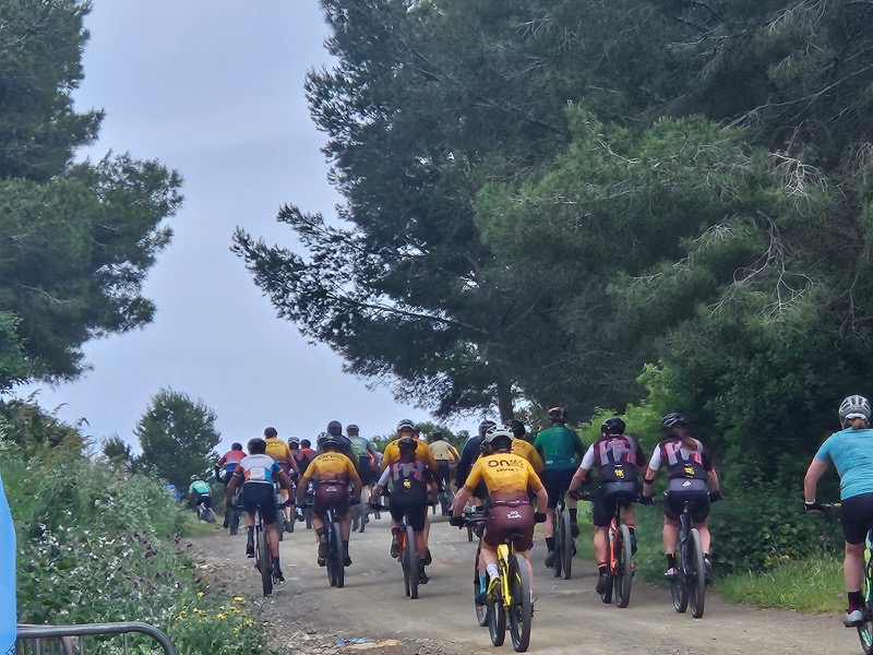 Los más de 60 inscritos, 62 en total, pulularon en el entorno de la salida durante la hora previa al anterior del arranque rodando con sus bicicletas, probando el terreno, mirando al suelo. Y, quizás, también al cielo. A pesar del temor inicial debido a unas previsiones meteorológicas marcadas por la posible presencia de lluvia, finalmente el cielo, aunque algo encapotado, se mantuvo despejado.