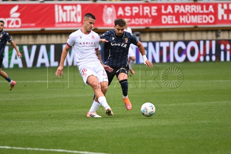 El Ceuta comenzó con muy buenas ideas. Kuki Zalazar filtró un pase espectacular que vio en el espacio a Konrad pero el ‘18’ no conectó bien el centro y el balón se fue a córner.