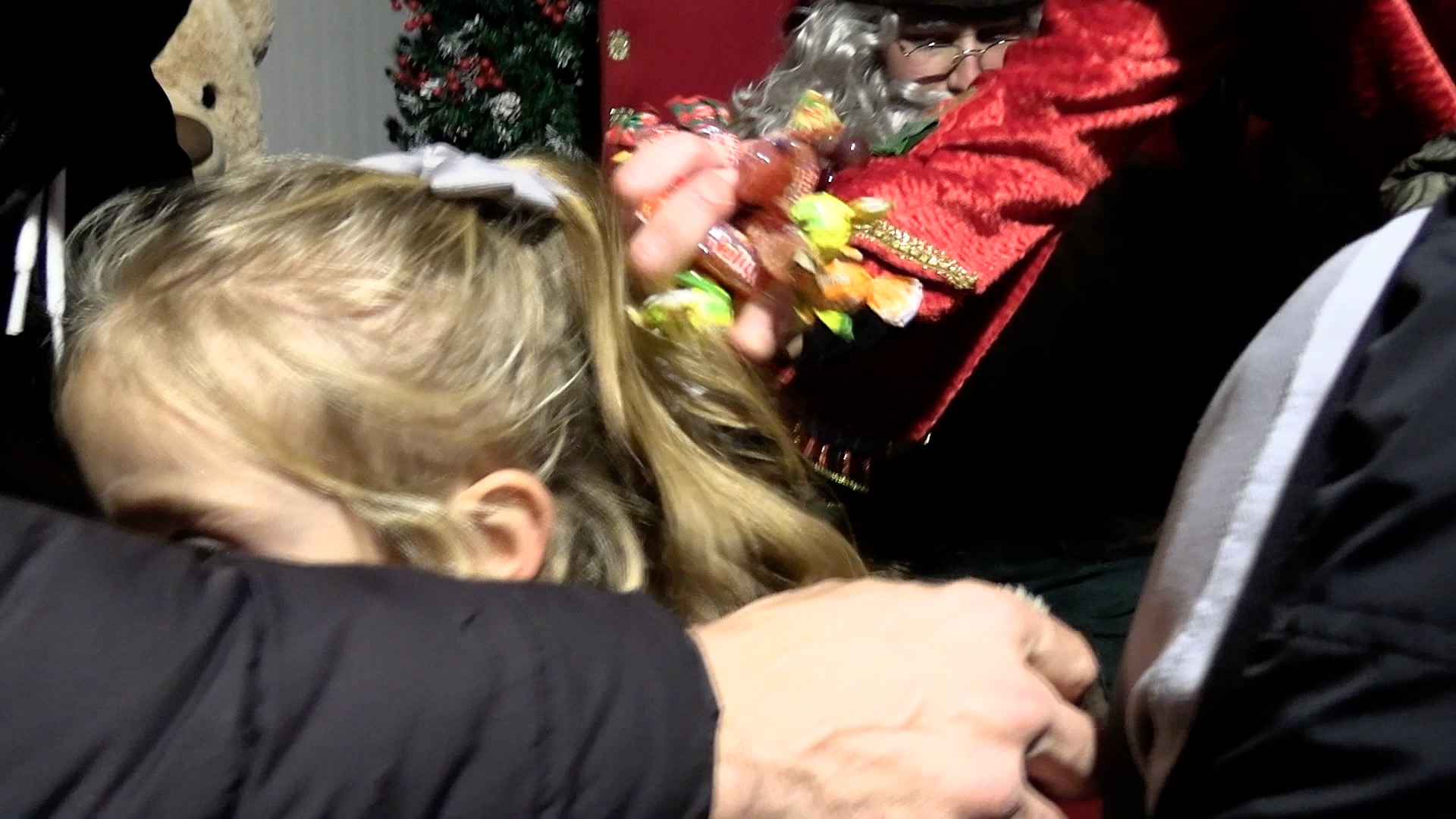 Junto a Papá Noel, una de sus elfas colaboraba en la tarea de repartir caramelos a los pequeños, unas golosinas que fueron recibidas con entusiasmo y muchas sonrisas por parte de los asistentes.