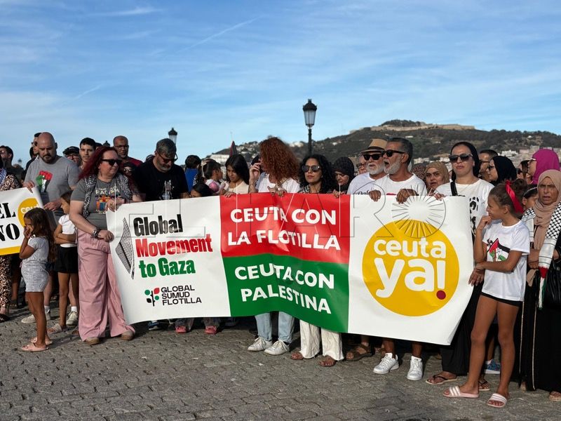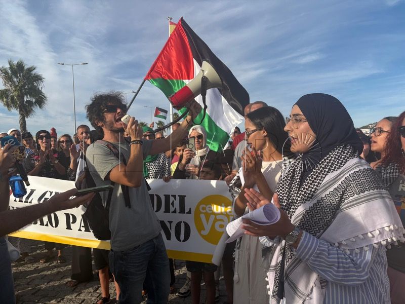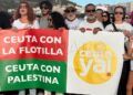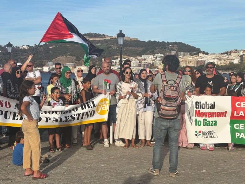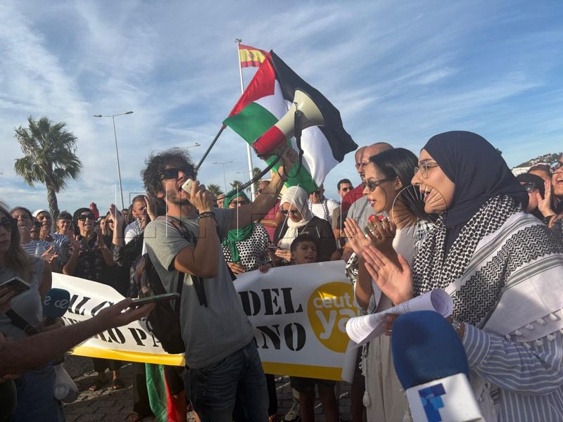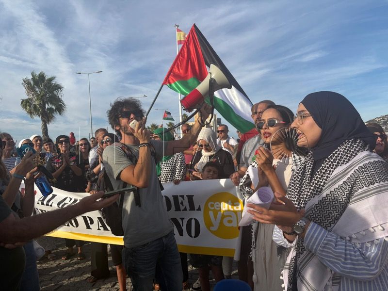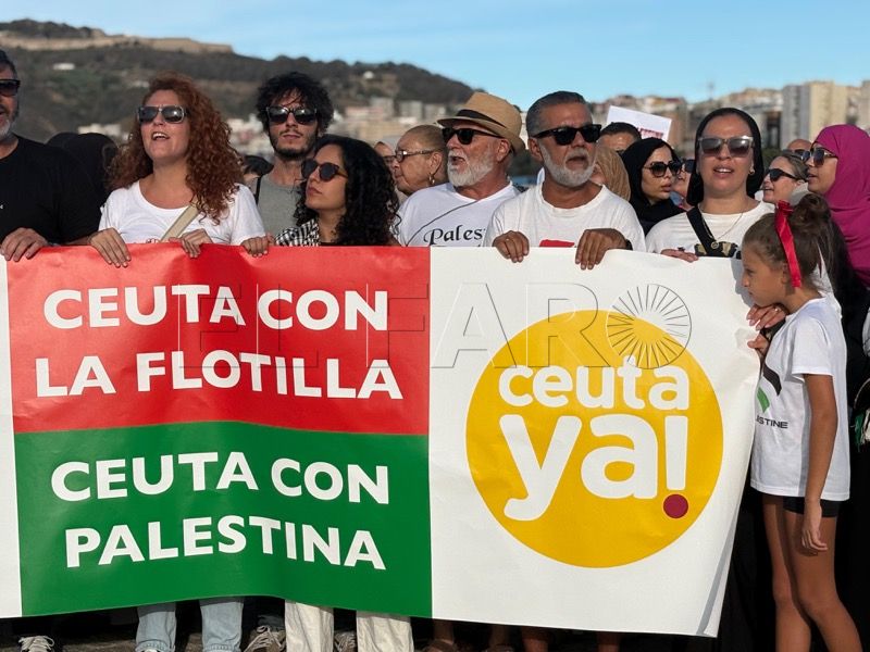 La formación política Ceuta Ya! ha reunido esta tarde a decenas de personas a las puertas del Muelle España en un acto simbólico de despedida a la Global Sumud Flotilla, embarcación que partió a las 14:00 horas desde Barcelona con rumbo a Gaza con el objetivo de romper el bloqueo marítimo impuesto por Israel.