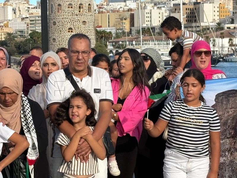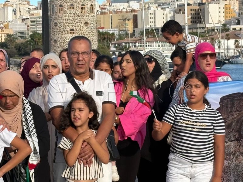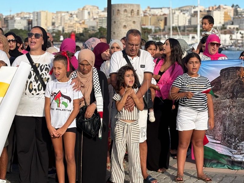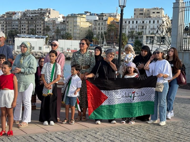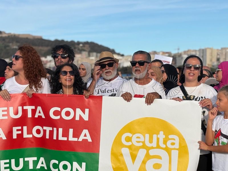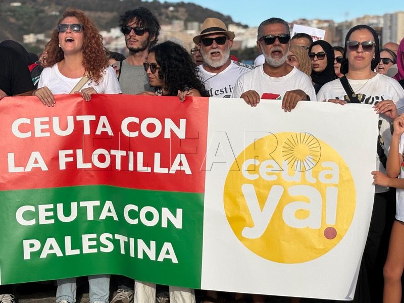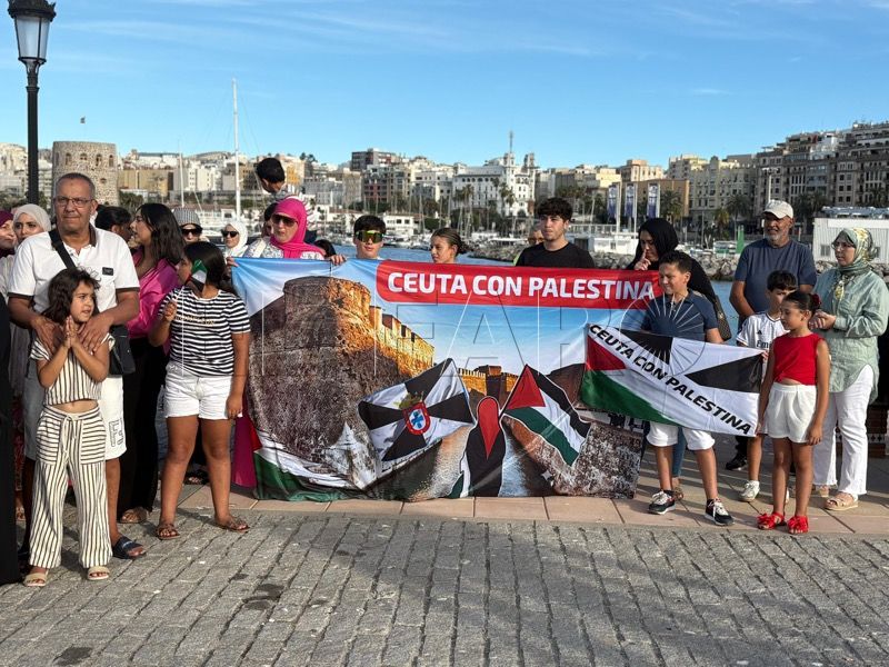 La formación política Ceuta Ya! ha reunido esta tarde a decenas de personas a las puertas del Muelle España en un acto simbólico de despedida a la Global Sumud Flotilla, embarcación que partió a las 14:00 horas desde Barcelona con rumbo a Gaza con el objetivo de romper el bloqueo marítimo impuesto por Israel.