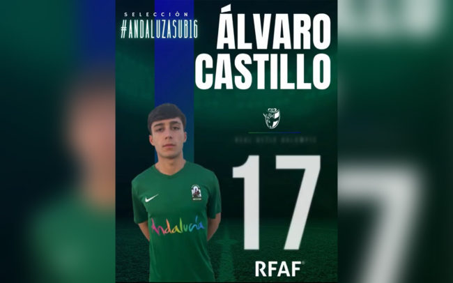 El ceutí, Álvaro Castillo, convocado con la Selección Andaluza Sub-16, con la que disputará la Fase de Oro del Campeonato de España de Selecciones Autonómicas de fútbol durante este fin de semana.