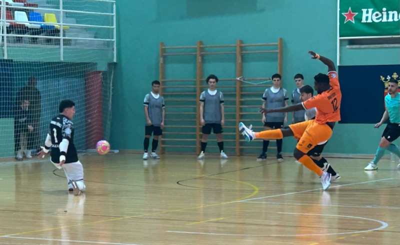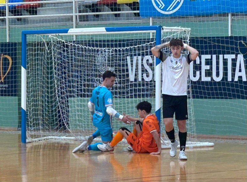 Siguió a la desesperada el Ceutí. Guilherme le pegó un viaje al balón que dio en el poste haciendo temblar los cimientos del pabellón.