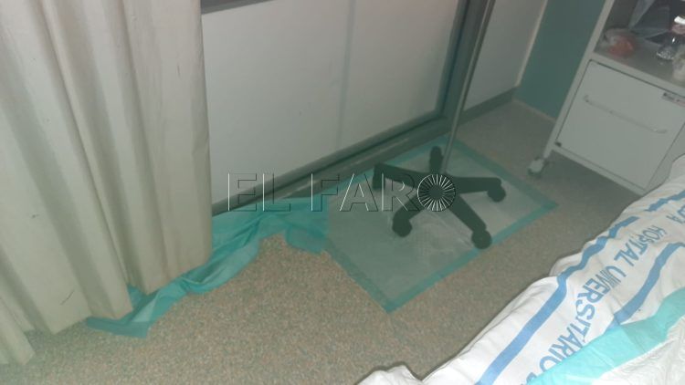 Hay historias que parecen surrealistas y, por desgracia, es la que están viviendo dos ceutíes en el Hospital Universitario. Nisri Abdeselam, junto a su progenitor que lleva ingresado desde el domingo en el clínico de Loma Colmenar, están viviendo una odisea y quisieron hacerla pública en El Faro. Su progenitor es un paciente de oncología, pero que se encuentra en la segunda planta del Hospital Universitario, que corresponde a Cirugía. La desesperación de Abdeselam es, sobre todo, porque desde el domingo por las fuertes lluvias está filtrándose el agua a las habitaciones y solo se han colocado empapadores para ‘solucionar’ el problema. Una solución que parece poco práctica porque son personas que no se encuentran en buen estado de salud y esa situación tampoco ayuda a su mejoría.