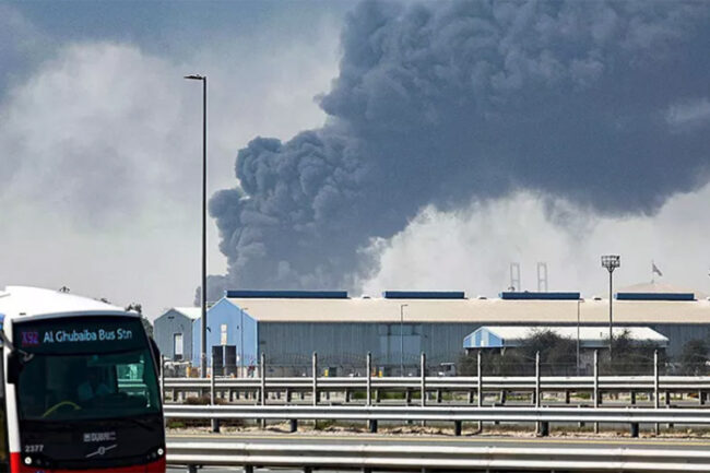 En medio de los ataques de respuesta de Irán, se informó que el aeropuerto de Dubái, la ciudad más poblada de Emiratos Árabes Unidos, confirmó que una zona de un terminal del aeropuerto internacional sufrió "daños menores" y que cuatro personas resultaron heridas en un incidente que no especificó.