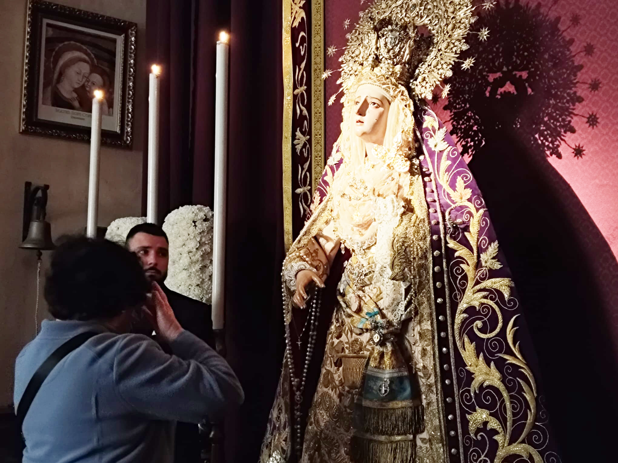 A lo largo de la mañana y de la tarde, los devotos tienen una oportunidad para ver cara a cara a la advocación antes del inicio de la Semana Santa. Esta ceremonia se constituye como una forma de mostrar su fe.