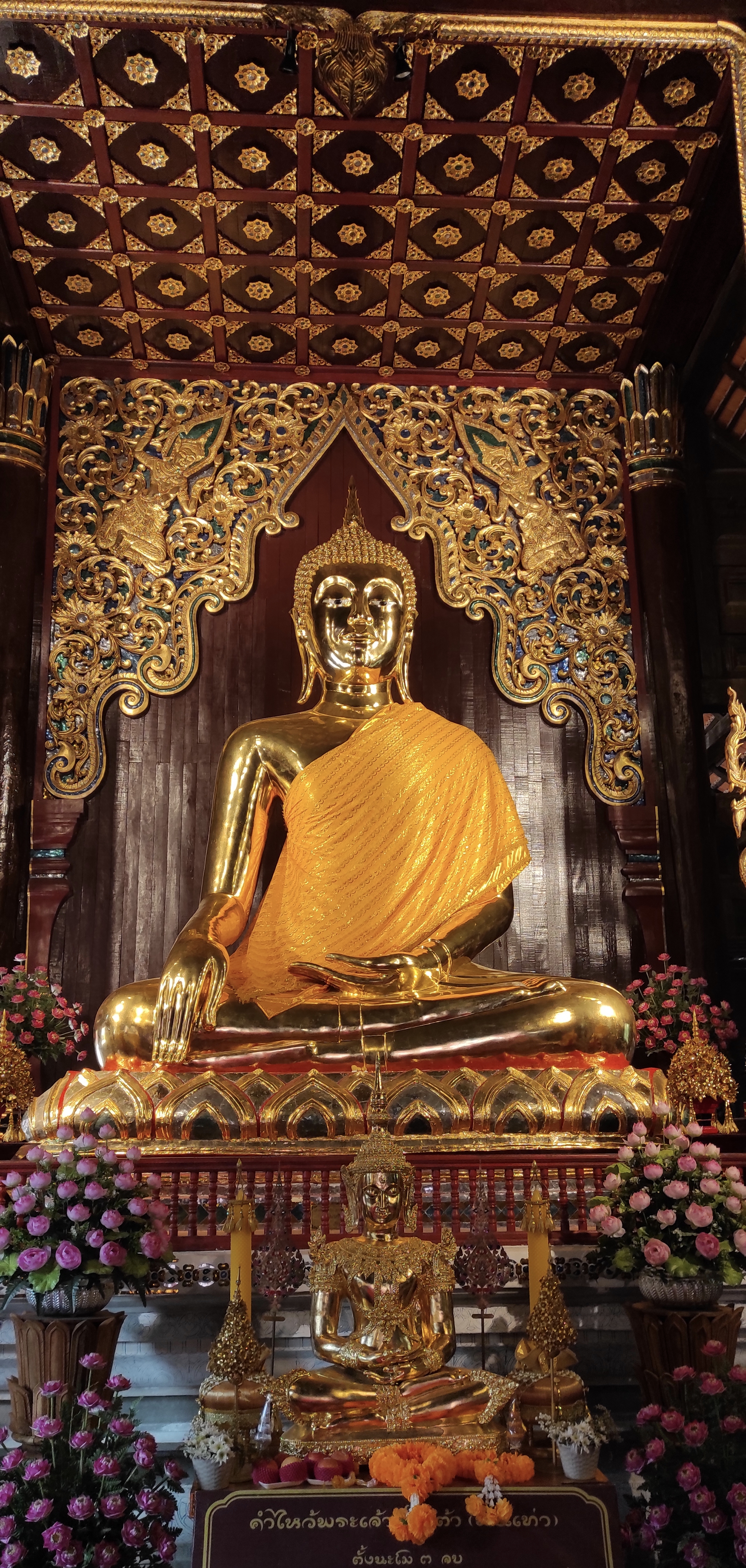 Me dirijo al casco antiguo, paso por el monumento a los tres reyes fundadores de Chiang Mai y allí cerca, en una plaza cortada por una carretera de ambos sentidos, decenas de personas se afanan preparando un escenario, al día siguiente era fiesta en la ciudad. Atravieso una avenida llena de restaurantes, tiendas de ropa y de suvenir, gente aquí y allá curiosean entre los puestos. A dos calles de allí se encuentra el templo Wat Chedi Luang, en su interior hay una estatua dorada de Buda sentado y una pagoda dorada rodeada de un cuidado jardín con flores de aromas que me son desconocido. Me siento en un banco apartado y aprovecho la calma para meditar. Paseo por el templo relajado, sin rumbo fijo, quedándome con los detalles, con los sentidos despiertos, agradecido por la apacible experiencia.
