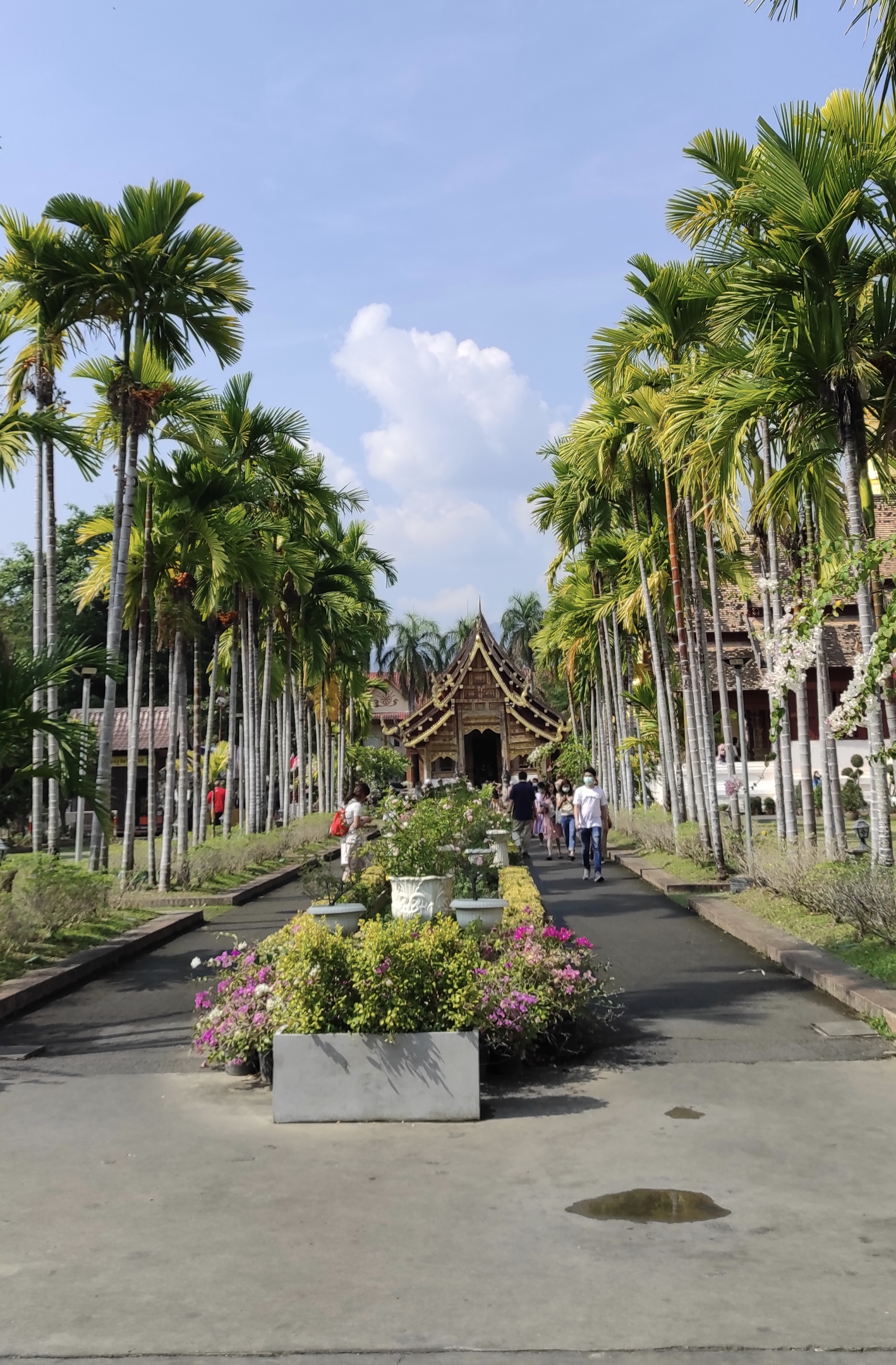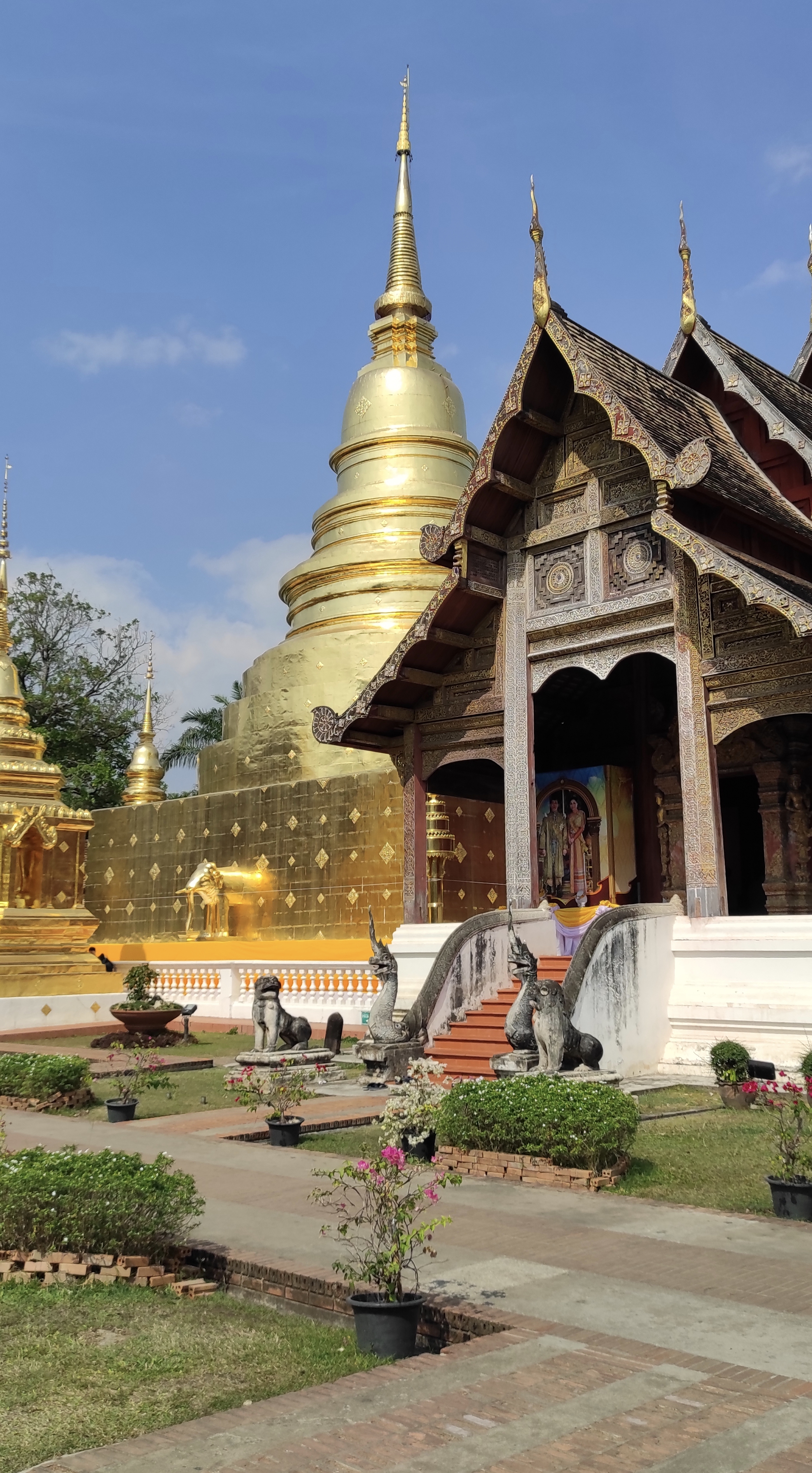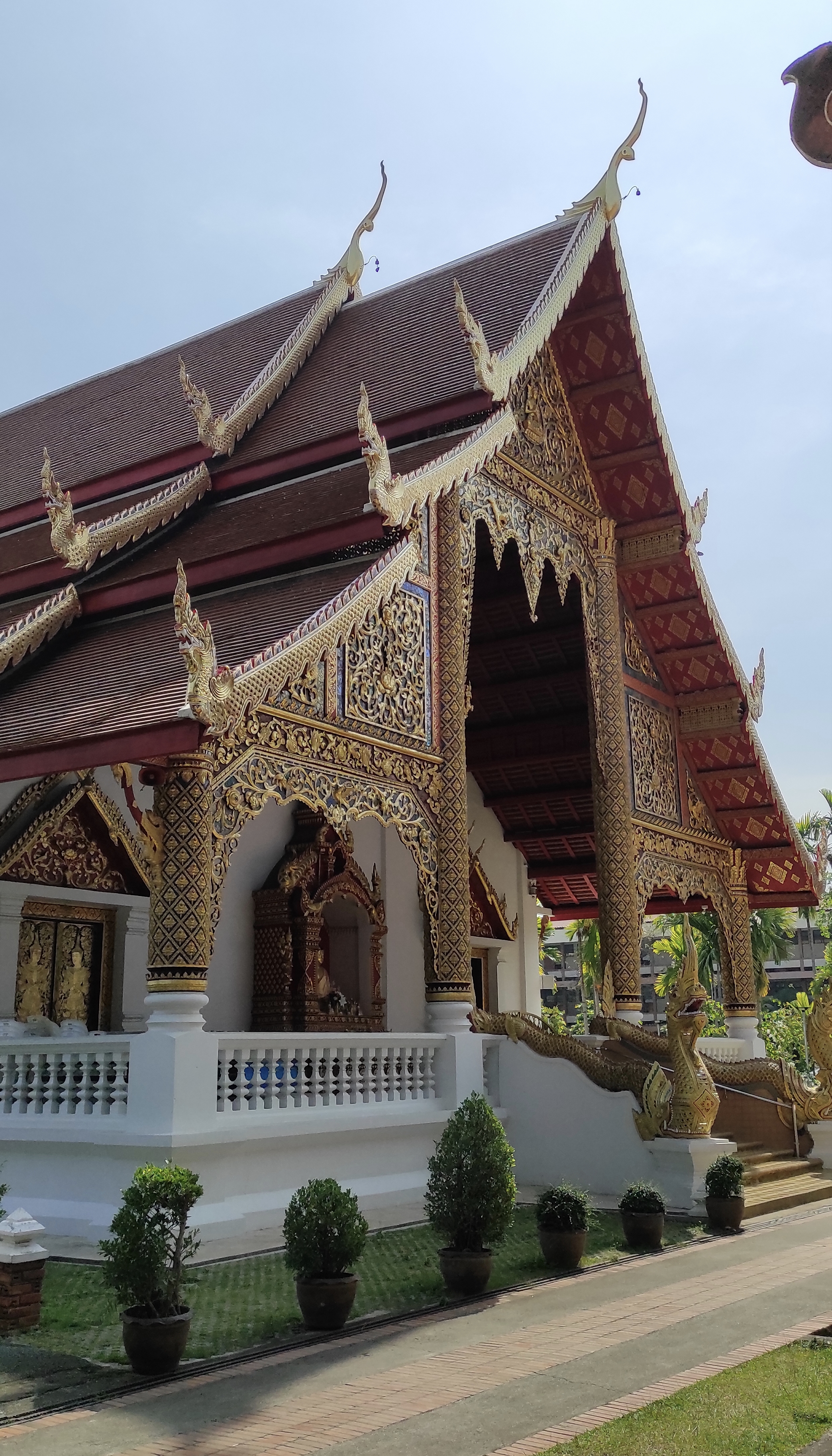 Al día siguiente vuelvo al casco antiguo para visitar el templo Wat Phra Singh, es un templo mucho más bonito que Wat Chedi pero también más concurrido. Sus pagodas de oro, sus cuidados jardines y patios son dignos de admiración. A pesar de tanta belleza, echo en falta la paz que se respiraba en Wat Chedi y voy alejándome del templo a medida que van apareciendo las aglomeraciones de turistas. A la salida arroz con mango y leche de coco.