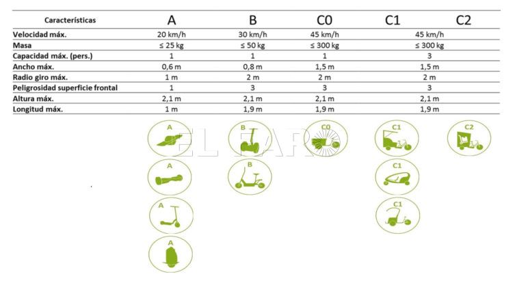 La mayoría de patinetes eléctricos en circulación son de tipo A y B, según la catalogación establecida por la DGT hace dos años. Los primeros tienen una velocidad máxima de 20 kilómetros por hora con una masa igual o inferior a los 25 kilogramos y los de tipo B alcanzarían los 30 km/h y pesarían 50 kilos o menos, entre otras características.