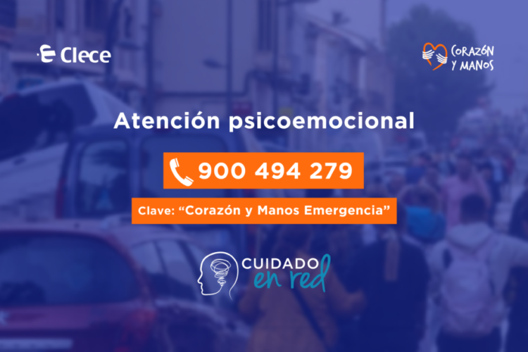 De esta forma, toda persona que se encuentre en un estado emocional complicado debido a los efectos de la DANA puede llamar al 900 494 279 y decir la clave ‘Corazón y Manos Emergencia’ para ser atendido por un profesional de la psicología que le proporcionará las pautas con las que sobrellevar estos momentos.