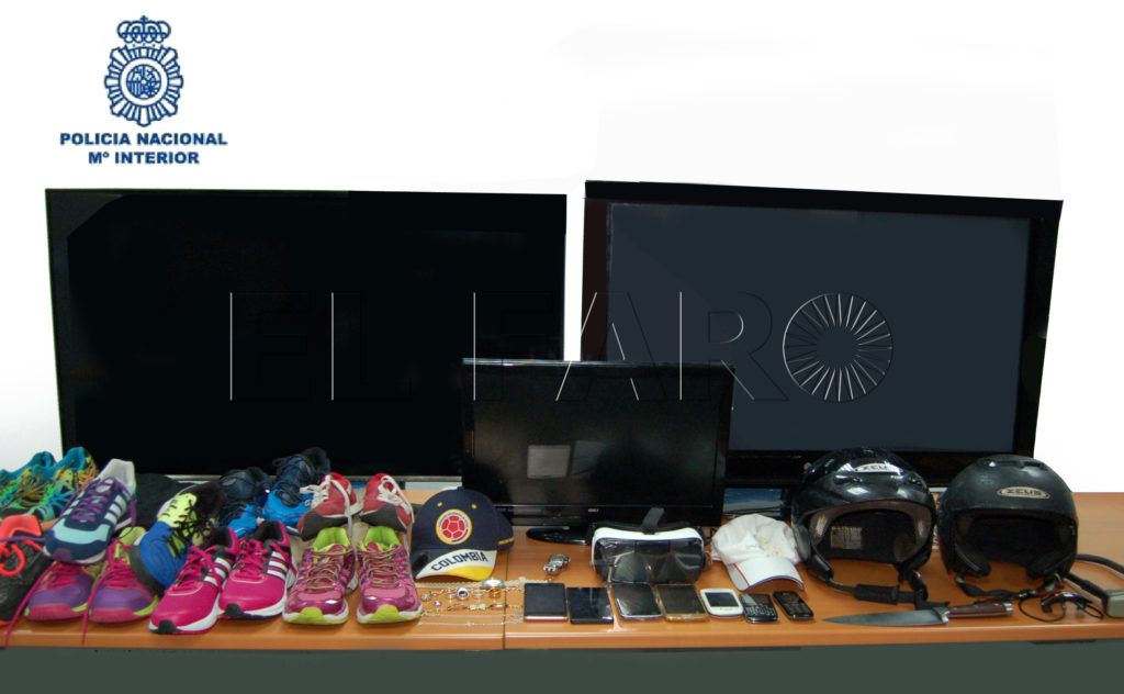 Gracias a la colaboración ciudadana, que alertó a los servicios policiales del robo de una motocicleta, la Sala Operativa del 091 distribuyó a los radiopatrullas de forma coordinada por la zona de la Marina Española para que finalmente lograran la detención de los autores del delito y la recuperación de los siguientes efectos: 2 motocicletas, 2 cascos de moto, 3 televisores, diversas prendas de vestir, 7 teléfonos móviles y joyas.