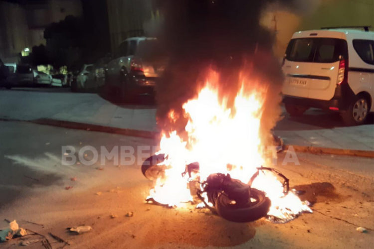 Mientras que en la noche del lunes al martes volvía a incendiarse el vertedero de Arcos Quebrados, un nuevo fuego se originaba recién comenzado este miércoles, esta vez, en Juan Carlos I. A las 00:10 horas recibía el Cuerpo de Bomberos de Ceuta un aviso por un ciclomotor en llamas que se encontraba estacionado en la barriada ceutí. Acompañados por una escolta de la Policía Local, se desplazaba un vehículo pesado que trasladaba a cinco miembros del SEIS (Servicio de Extinción de Incendios y Salvamento) hasta el lugar. Tras haber consumido una cantidad aproximada de 500 litros de agua, la dotación enviada terminó sofocando las llamas poco después, a las 00:35 horas.