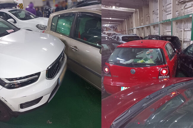 La imagen se aprecia en estos vídeos que acompañan la noticia. Vehículos destrozados, algunos con daños importantes. Arriba en el barco también se habían producido daños, pero en la bodega estaba lo peor.