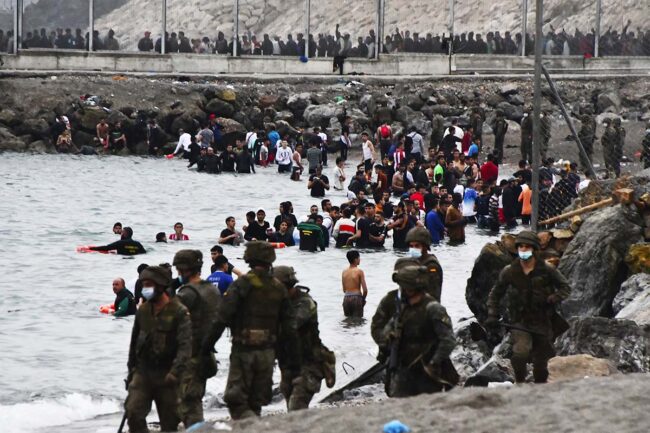 Estamos viendo cómo ante las continuas llegadas de inmigrantes sobre todo menores, los medios de comunicación europeos han puesto de manifiesto la complicada situación de la frontera sur de la Unión, pero sin entrar en los orígenes y posibles soluciones del problema. Es curioso que Ceuta esté sufriendo incluso invasiones como la de 2021, que se atribuyó entonces a las malas relaciones entre Marruecos-España por admitir esta última el traslado del líder del Polisario a un hospital de La Rioja. Igual que aquella avalancha parece que fue propiciada, los incidentes en las vallas fronterizas, el bloqueo de hecho de la Aduana Comercial y tantos otros inconvenientes, podrían formar parte de un plan futuro que ahora está aparcado por los temas del Sahara y Canarias.
