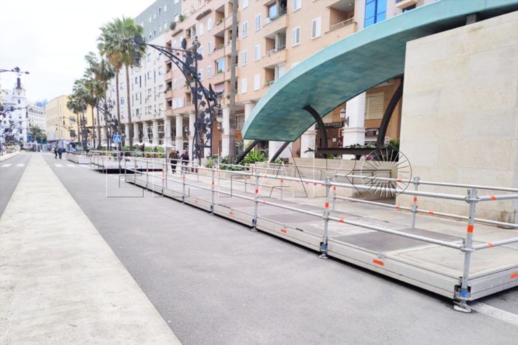 Asimismo, la parada de taxis que se encuentra en esta céntrica calle de la ciudad se ha visto trasladada desde su tradicional ubicación hasta el paseo de las Palmeras, que se encuentra paralelo a al paseo Alcalde Sánchez Prado, más conocido como la Gran Vía.