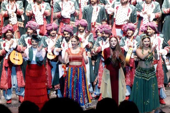El popurrí, una de las partes más destacadas de la actuación, ha mezclado música, voces y baile, con la actuación de bailarinas de la Escuela de María José Lesmes representando las culturas de la ciudad.
