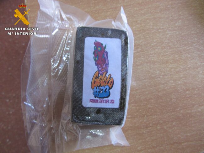Los bloques de hachís intervenidos venían con la marca Gelato 33, una de las cepas de cannabis más populares en el mundo del cultivo.