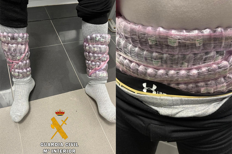 A la Guardia Civil le resultó sospechoso, así que primero revisaron al detalle su maleta para, después, verificar que el hachís lo llevaba adosado a su cintura y a sus piernas.