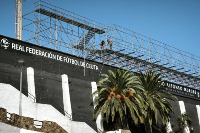 La gran cita se acerca y las obras del ‘Murube', en Ceuta, no descansan. Las gradas supletorias van tomando forma y desde las inmediaciones del estadio se puede observar cómo se está construyendo el esqueleto de lo que será el área de preferencia.