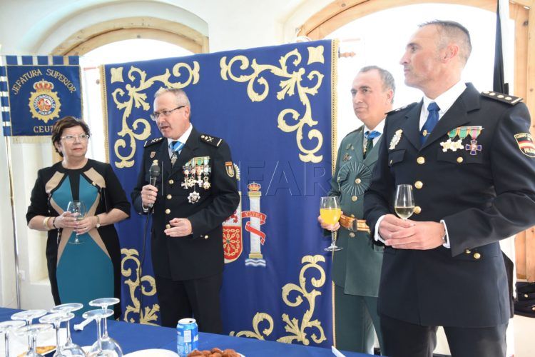 Tras los actos de este mediodía por el Día del Patrón del Cuerpo Nacional de Policía en Ceuta, se ha celebrado esta tradicional copa entre los asistentes, galardonados, allegados, familiares, amigos y demás autoridades que han sido partícipes de esta fiesta. Las mejores instantáneas de esta cita se pueden ver en la siguiente fotogalería, con las imágenes de Reduan Ben Zakour.