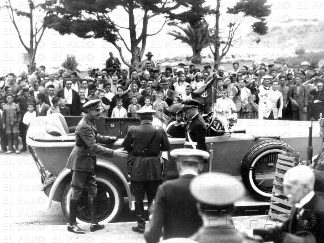 Estos apenas dos minutos de documento cinematográfico pertenece a los fondos que la Filmoteca Española ha digitalizado recientemente con el fin de divulgar sus archivos. Uno de ellos es la visita de los Reyes de España a Ceuta. Es el año 1927. La conclusión de la Guerra del Rif propicia el traslado de los monarcas a la ciudad, estancia que resultaría de lo más productiva. “Inauguraron el palacio municipal, el chalé Ybarrola, visitaron el acuartelamiento de la Legión Dar Riffien, emplazado en el Protectorado, donde la reina Victoria Eugenia hizo entrega de una bandera al Tercio. Luego visitaron Tetuán”. Quien explica los detalles de aquella visita real en blanco y negro es el investigador y escritor Francisco Sánchez Montoya, autor a la sazón de un volumen sobre los particulares.