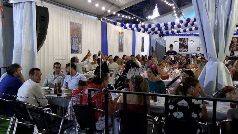 En esta caseta, también nos hemos sentado con varias familias que habían pedido una carta casi entera: secreto, pulpo, gambas rebozadas, tortillas de camarones, y por supuesto, mucha conversación.