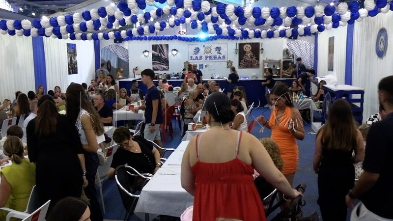 Nuestra primera parada de la noche ha sido en El Bache, una caseta en la que se respira ambiente familiar y de amistad, además de festivo desde la entrada. Allí nos hemos encontrado con los componentes del Coro de Ceuta, quienes entre bromas y risas aseguraban que el “presi” del grupo se había olvidado la cartera y que debía pagar la cuenta.