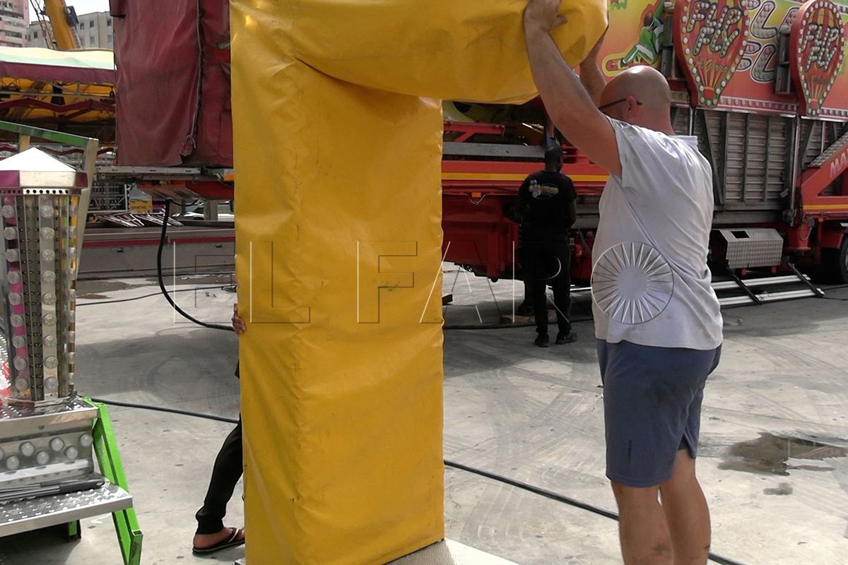 Un equipo de FaroTV no ha querido perderse detalle de cómo va el montaje de las atracciones y ha bajado hasta el recinto ferial para hablar con los feriantes y conocer de primera mano cómo es este trabajo y que expectativas tienen de cara a la feria que está a punto de comenzar.