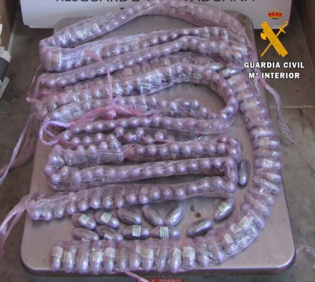 En este 2025 han sido decomisados más de veinte kilos de esta narcótica sustancia tras ser expulsada por quienes la portaban. Son los servicios más penosos para la Benemérita, y supone además una ruta que nunca termina de ser eliminada a pesar de los riesgos para la salud de quien se presta a ello.