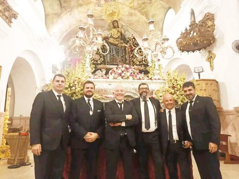 El equipo de costaleros y capataces no se moviliza solo en la procesión, también participais en la ofrenda floral.