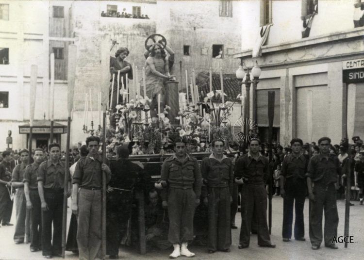 Nada comparable aquellas salidas penitenciales de 1944 en nuestra ciudad a las actuales. Levantada cinco años atrás la suspensión que pesaba sobre ellas durante la Guerra Civil, quedaba todavía mucho camino por recorrer hacia mejores tiempos. Pero comenzaba ya a trabajarse de firme. En medio de tantas carencias era bastante meritorio que se pudieran poner un total de doce pasos en la calle, casi todos muy modestos y portados a ruedas.