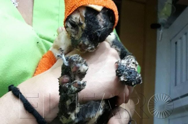 La pequeña gata sufrió terribles heridas.