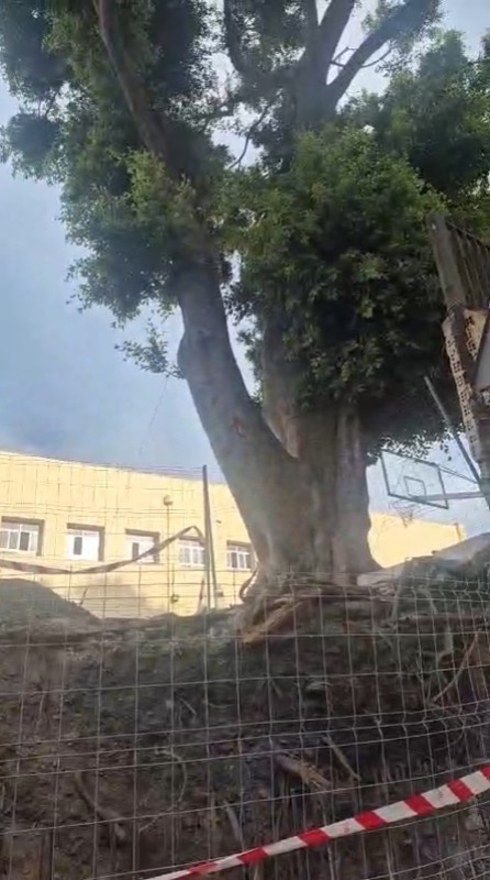 De acuerdo con lo que ha señalado la asociación, “se está hormigonando el hueco abierto tras retirar tierra y recortar raíces de dos ejemplares de ficus de gran porte y valor patrimonial”.