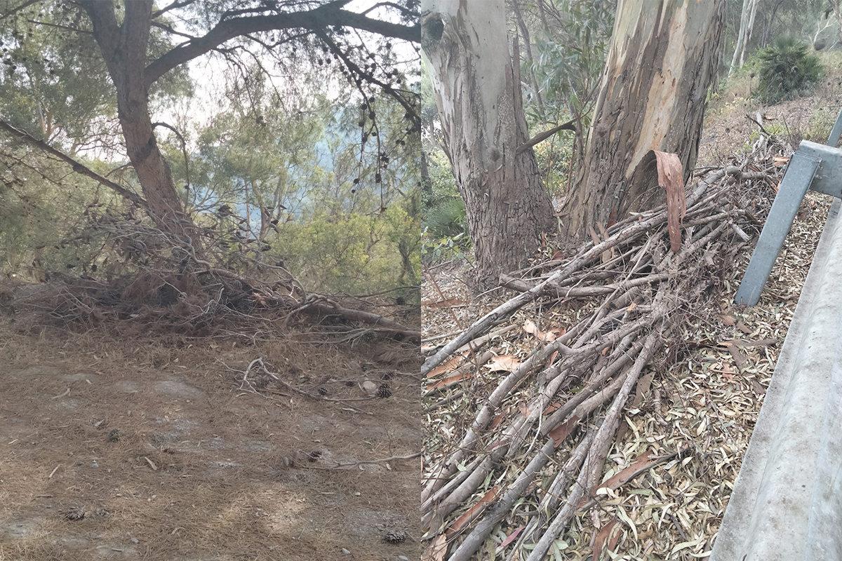 En este sentido, comentan que durante la inspección han detectado restos de podas quemados junto a árboles, acumulaciones de ramas y troncos en márgenes de carretera o árboles secos en laderas de difícil acceso.