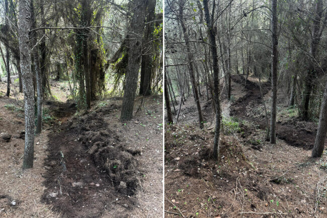 Asimismo, indican que “se han dispuesto ramas y troncos para delimitar curvas, lo que sugiere la creación de un circuito para bicicletas o motocicletas”, una práctica que implicaría la modificación artificial del terreno y la afectación directa al ecosistema.