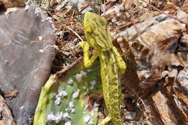 No obstante, a pesar de las inspecciones, se indica que no se detectaron ejemplares de camaleón común, aunque en el documento se reconoce la baja detectabilidad de la especie y se admite que las condiciones climáticas en el momento de las visitas pudieron haber dificultado su observación.