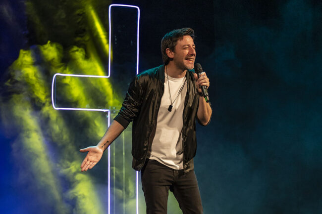 - Sí, yo siempre lo hago. Hay muchas partes donde hago reflexionar a la gente. Por ejemplo, en la duda, de que dudamos mucho y hago que la gente se sienta bien diciendo, bueno, no solo me pasa a mí, también le pasa a alguien que está sobre el escenario.