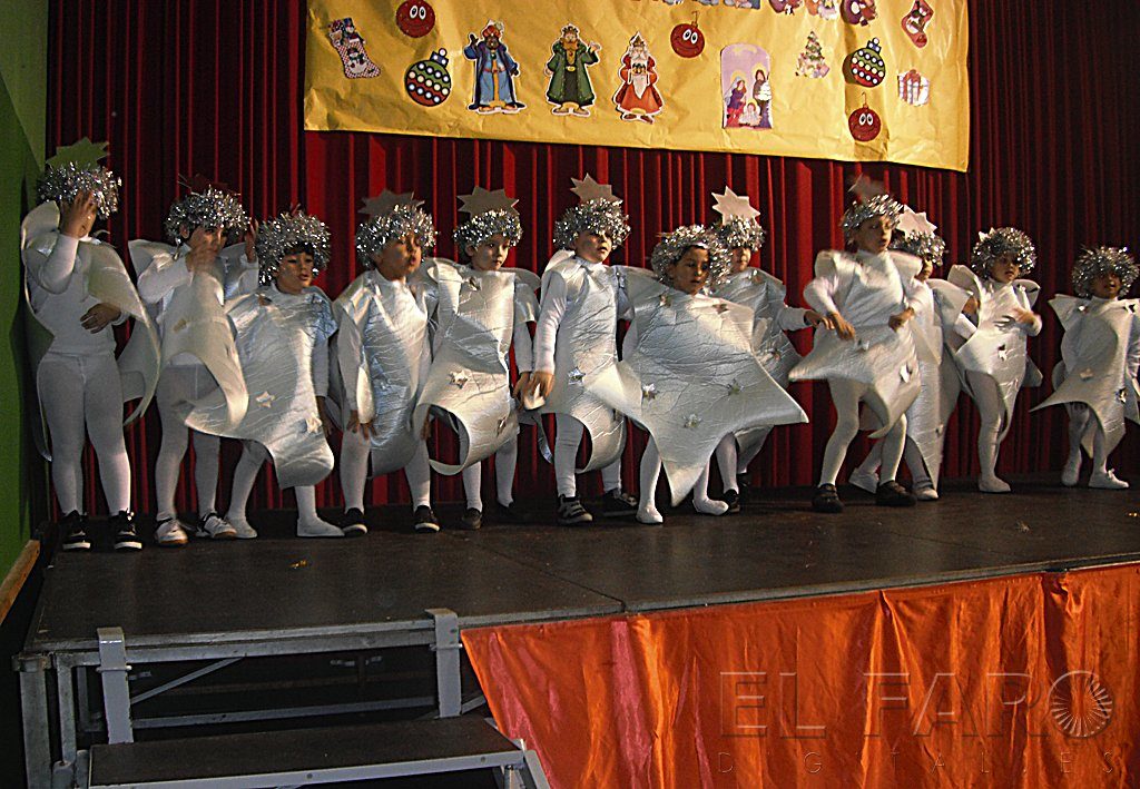 Seguidamente actuaron los niños y niñas de Educación Infantil (4 años), bajo las directrices de su Maestra Srta Aurora, los cuáles recitaron brillantemente “Poesías de los Reyes” y otro grupo del mismo aula interpretaron “Baile en Navidad”, el resultado final fue del agrado del gran público, con grandes aplausos finalizó la primera parte de la jornada matinal. Inmediatamente después de que dieran las doce de la mañana, se reinició el pequeño espectáculo, tocándole el turno a los alumnos/as de Ed. Infantil (5 años), dirigidos con maestría, como ella solo sabe, la Maestra Srta. Mª Ángeles Ulecia. Sus niños bailaron la canción “Mamasita ¿Dónde está Santa Claus?”, mostrando sus pequeñas habilidades en una coreografía colorida y con un plus interpretativo muy alto, sacando a menudo carcajadas de los padres asistentes. El otro grupo de 5 años bailó “La estrellita de los Reyes Magos” causando una gran impresión, pues se trataba del camino que debían recorrer los Reyes Magos, tomando la “ESTRELLITA” como una referencia única e invocadora del niño Jesús en su camino a Belén.