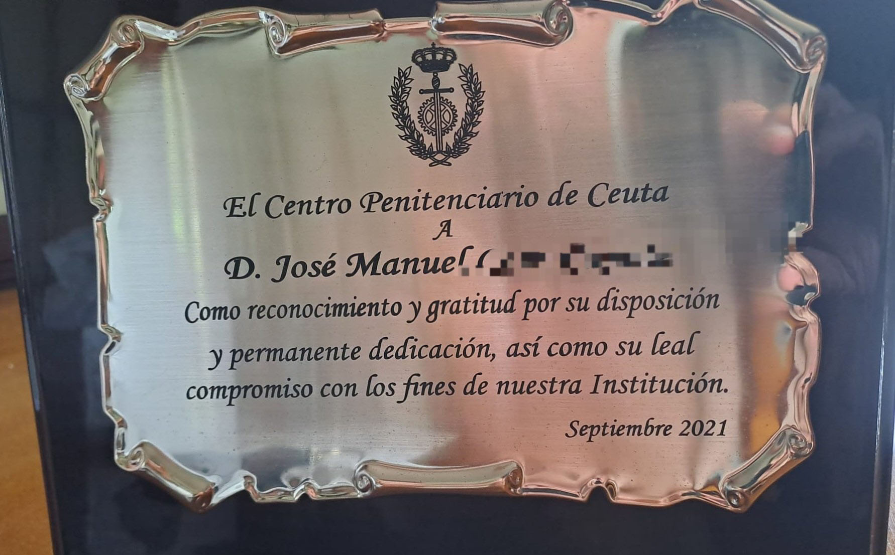 Entre los casos más destacados está el de José Luis, un funcionario que sufrió complicaciones graves tras contraer COVID-19 mientras trabajaba en prisiones, llegando a pasar semanas en la UCI. Como muestran en una fotografía, en 2021 recibió una placa del Centro Penitenciario en la que reconocían su "disposición y permanente dedicación así como su lealtad y compromiso" con los fines de Instituciones Penitenciarias. "¿Del reconocimiento a la persecución?", se preguntan ahora desde TAMPM.