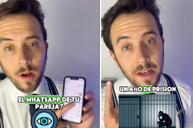 En el vídeo, el letrado plantea preguntas directas a los usuarios: "¿Es delito mirar el WhatsApp de tu pareja? ¿Te gusta leer los mensajes de tu novio o novia? O mejor aún, ¿le obligas a que te los enseñe? En ese caso, atento a este vídeo".