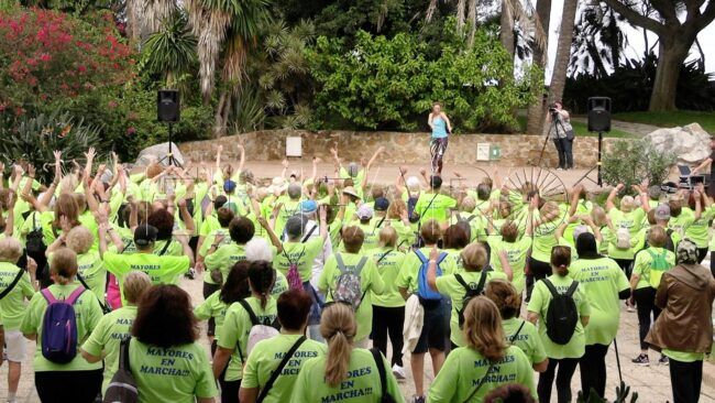 El recorrido ha estado cargado de ganas. Los mayores han avanzado por el Paseo de las Palmeras, han atravesado la zona del Hércules y se han dirigido hacia el Parque Marítimo del Mediterráneo, donde ha culminado la caminata.
