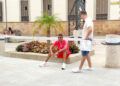 Antes de la salida, muchos de los corredores no han dudado en calentar para evitar lesiones durante la carrera. Así, se podía ver a los participantes corriendo alrededor de la Plaza de África e incluso haciendo ejercicios para preparar el cuerpo para la inminente salida.