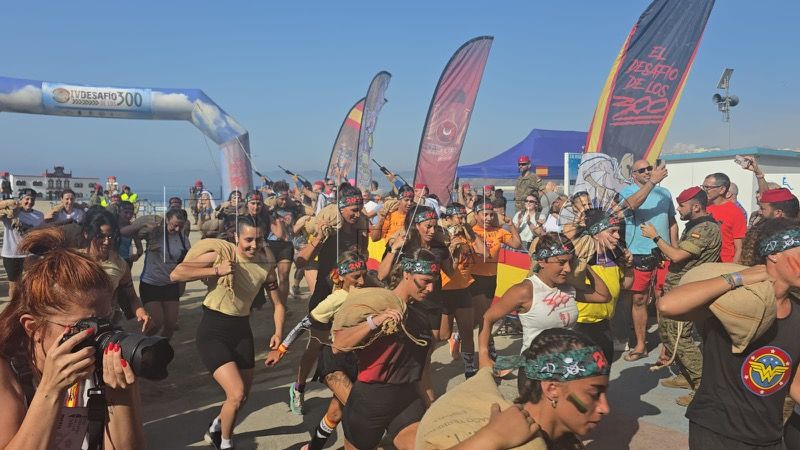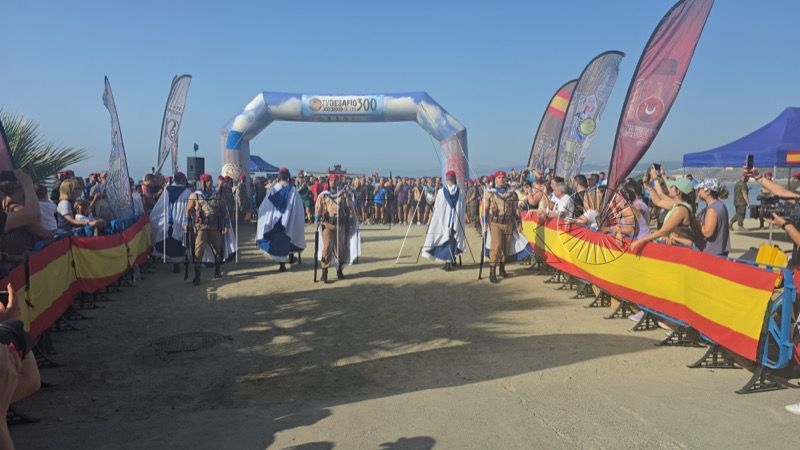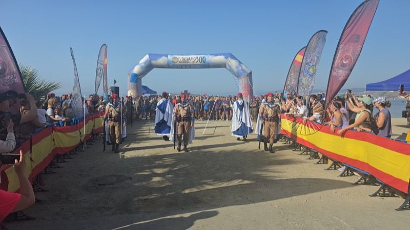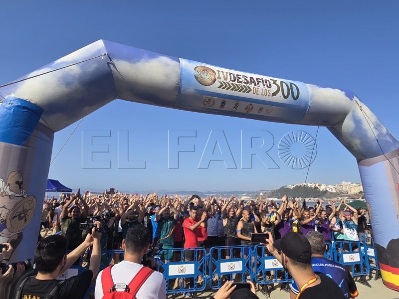 El grupo de Regulares número 54 de Ceuta es el organizador de la prueba. Ha habido militares desplegados por toda la playa de la Ribera para que todo se cumpliera con normalidad. Con sus uniformes y el espíritu regular, daba inicio la octava edición del Desafío de los 300.