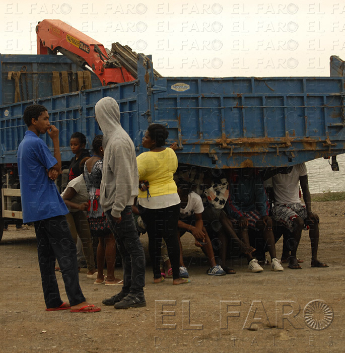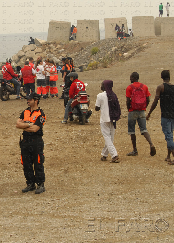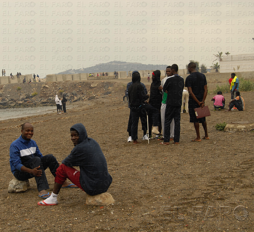 Cruz Roja, Voluntarios y CNP coordinaban el servicio que precisaba una situación así, de alerta y excepcional. “No hemos atendido a nadie, sólo nos acercamos a ver cómo estaban una mujer y su bebé y vimos que no necesitaban atención”, señaló Cruz Roja a pie de playa. Justo al lado, un corrillo de siete residentes aguardaban a que llegaran noticias de la mejor manera posible, disfrutando del deporte, pues jugaban a que una pelota de tenis no tocara la arena: “Je suis Messi, je suis Messi”, decía uno de ellos, que encontró acto seguido una respuesta contundente: el dedo de otro residente se señalaba la espalda de su camiseta del Real Madrid: ‘Cristiano Ronaldo’, se podía leer. “Lo peor del desalojo es que es la hora de comer”, se lamentaba otro inmigrante, mientras se palpaba el vientre, como corroborando sus palabras.