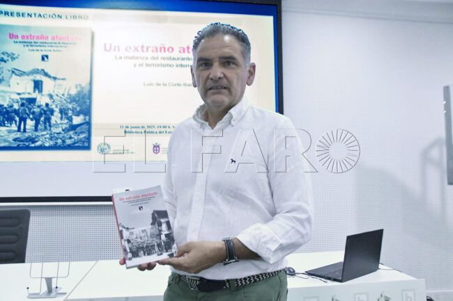 Luis de la Corte Ibáñez, miembro del Instituto de Estudios Ceutíes, ha vuelto este miércoles a su ciudad natal, Ceuta, para presentar un nuevo trabajo. Se trata del libro ‘Un extraño atentado. La matanza del restaurante El Descanso y el terrorismo internacional’.